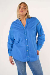 Esta blusa de algodón fresca con un sofisticado escote en V hace que sea una nueva prenda atemporal para tu armario. La blusa tiene una bonita cascada de botones que crean sin esfuerzo un aspecto elegante y a la moda. La manga tiene bonitos adornos con un elaborado bordado, que le proporciona un toque encantador a la blusa. Con su corte recto, esta blusa ofrece comodidad y versatilidad para cualquier ocasión.